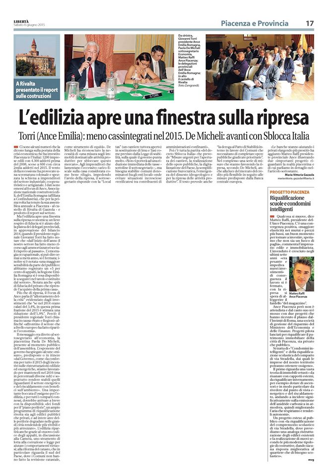 Dopo l’illustrazione dei dati sull’andamento del settore delle costruzioni, il Presidente dell’Associazione regionale Giovanni Torri ha ceduto la parola all’Onorevole Paola De Micheli che ha sottolineato che il Governo, nella seconda parte dell’anno, porrà la sua attenzione sui settori delle costruzioni e del turismo al fine del rilancio dell’occupazione. In allegato la rassegna stampa e le slide illustrate